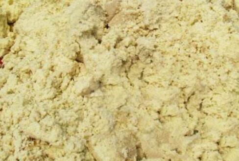 3、然后把拌好的麥麩均勻灑在1000公斤豆渣中,一遍撒,一遍噴灑已經融化好的紅糖水,(如果有條件的話,可以用攪拌機攪拌,人工攪拌均勻也完全可以)。